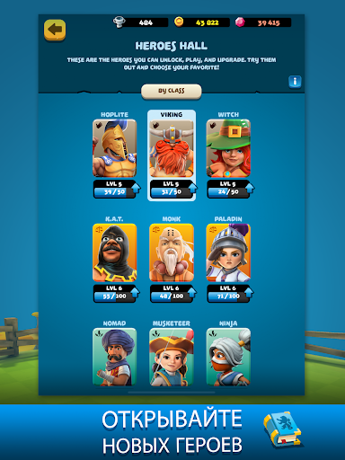 Соберите 9 героев и выберите одного из них. У каждого героя собственный боевой стиль, найдите идеальный вариант. Стирайте врагов в порошок в роли медлительного, но крепкого Викинга, мускулистого, но образованного Грека или чувствительного, но веселого Палача, а также многими другими.