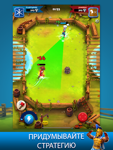 Побеждайте на аренах, чтобы удержать первенство. Не забывайте улучшать героев, используйте окружение против врагов. Наберите скорость при помощи «канатов», а затем вынесите противника! Экспериментируйте с колодой заклинаний, остерегайтесь ловушек, совершенствуйте навыки и – самое важное – сделайте все возможное ради победы!