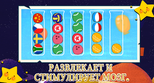 💡 Быстро сортируйте цветные шарики в пробирках до тех пор, пока все одинаковые цвета не окажутся вместе в одной пробирке. 💡
