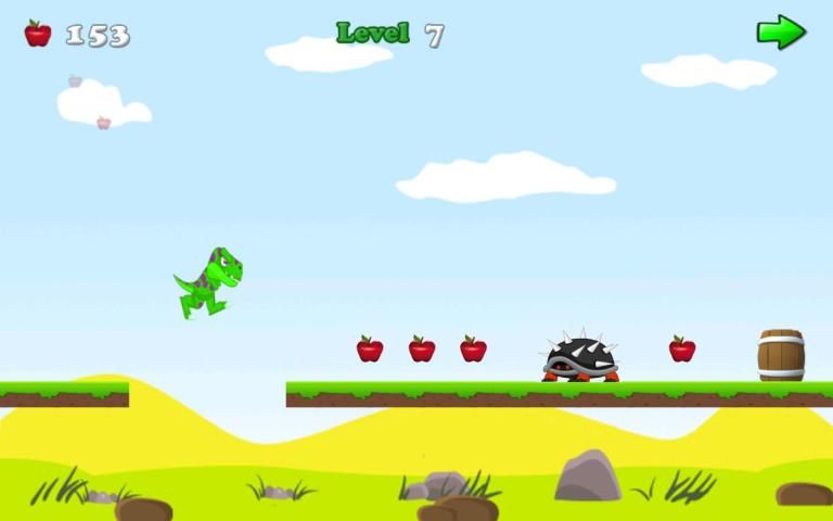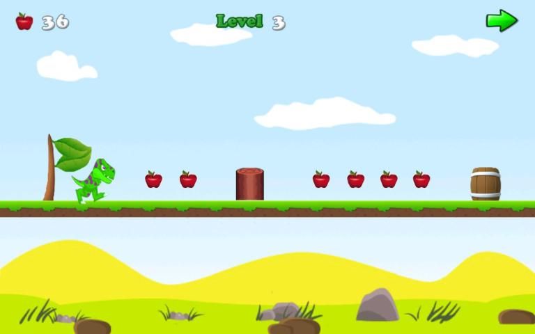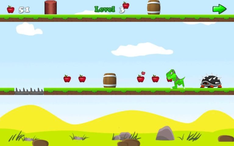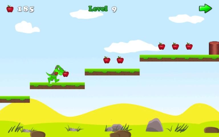 Управление голодный динозавр и собрать как можно больше яблок, как вы можете в этом мире.