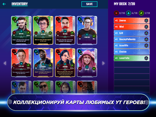 Собери звездную команду видеоблогеров и устрой карточные войны с соперниками со всего мира.