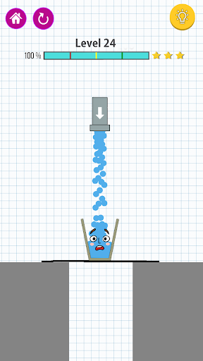 It is a physics puzzle game and with lot of challenging twists of draw line puzzles of brain training games. This new fill lines game is good for players of all ages kids and adults to make their mind sharp and enhance their mind power by playing this physics based game and solve crazy physics puzzles of one of the best line draw and glass games. This fill water with glass game gives you tough and exciting time to draw lines to make path for the drops of falling water in to the empty glass and fill the glass with water by solving puzzles of interesting crazy physics.