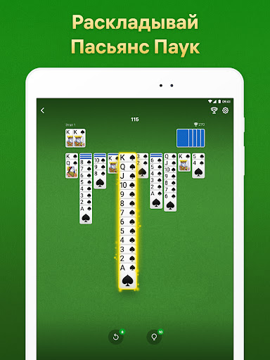Сделали неправильный ход или не знаете, куда двигаться дальше? Умные подсказки и отмена хода помогут вам пройти пасьянс Паук!