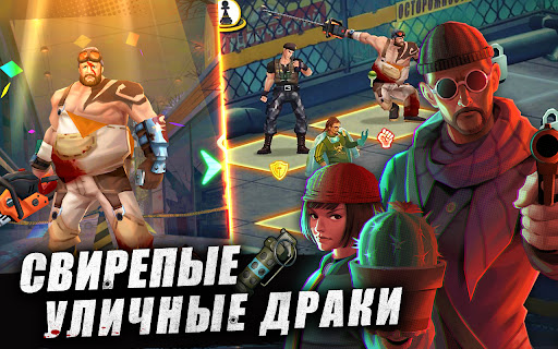 Используйте стратегию для размещения ресурсов, собирайте редкое снаряжение, увеличивайте боевую силу и постройте свою собственную банду для сражения с мощными врагами! Собирайте награды AFK и с легкостью повышайте свою боевую мощь. Приглашайте друзей сражаться вместе получайте больше материалов и двойные награды. Защищайте свою территорию от вторгающихся на неё игроков. Захватывающая арена также ждёт вас, станьте чемпионом мира! Постоянный рост даст вам привилегии и принесет пользу, станет показателем вашего статуса и свидетельством вашей силы на пути покорения криминального мира.