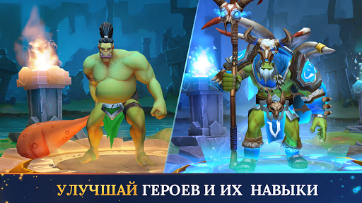 Призывай разнообразных героев, прокачивай их и экипируй лучшими артефактами, чтобы добиться успеха в Кампании и Боях на Арене.