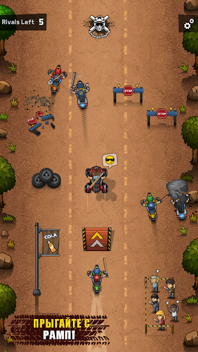 Перед каждой гонкой вам также предоставляется возможность собрать некоторые бонусы для вашего мотоцикла.Увеличьте скорость своего мотоцикла, чтобы обогнать соперников, купив несколько ускорителей, увеличьте свою броню с помощью щитов или пролейте немного масла на пути ваших противников, чтобы они врезались в препятствие!