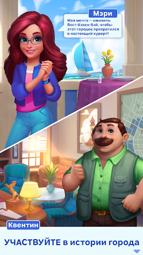 Добро пожаловать в Вест Хэвен Бэй! Когда-то этот пляжный город был курортом-мечтой, но теперь ему нужна ваша помощь, чтобы восстановить былую славу. Составляйте комбинации “три в ряд” и переходите от уровня к уровню, где на каждом повороте этой удивительной истории вас ожидают неожиданные приключения. Познакомьтесь с компанией очаровательных персонажей и постройте город своей мечты!