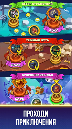 ● Режим «Приключения»: выполняй сюжетные задания и получай редких монстров, побеждай боссов, получай бонусы.