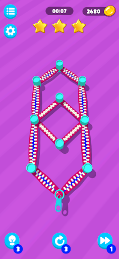 Zip Master - это уникальная и сложная игра -головоломка, в которой игроки используют Zip Puller, чтобы расслабиться на различные формы.Уровень с одним съемником на молнии.
