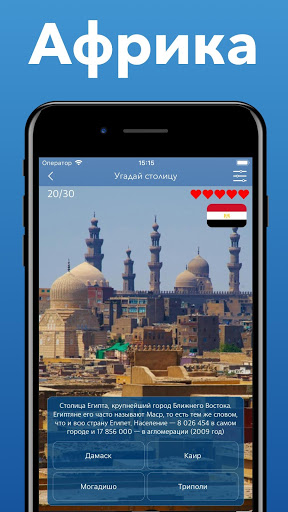 А вы знаете столицы европейских стран? Столицы стран Африки или Азии? Знаете ли вы, что Осло - столица и самый крупный город Норвегии, а Варшава - столица и крупнейший по населению город Польши? С помощью этого бесплатного приложения о географии Вы сможете выучить все города столицы всех стран мира! Проверьте свои знания географии! Угадайте столицы всех стран мира!