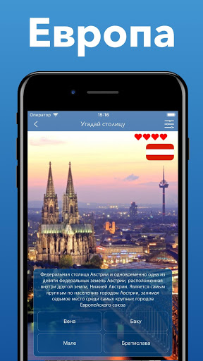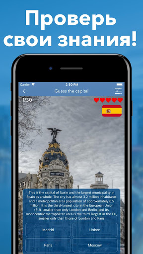 Вы знаете столицу Аргентины? Какой город является столицей Швейцарии? В этом бесплатном приложении вы найдете все страны мира, все столицы мира!