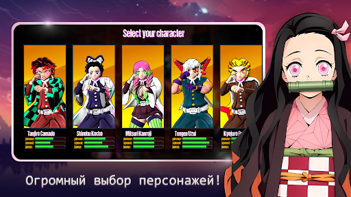 Выбирайте из множества обликов, включая Танджиро Камадо, Шинобу Кочо, Мицури Канроджи, Тенгена Узуи, Кеджуру Ренгоку и Незуко Камадо в полном облике демона, каждый со своим уникальным внешним видом.