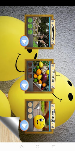• Choisir la catégorie appropriée parmi les trois types affichés dans 3 panneaux (animaux, fruits, emoji)