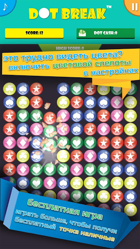 нажмите двух или более смежных точек или пузыри, чтобы разбить его, тем больше вы разбить, тем больше очков вы получите.