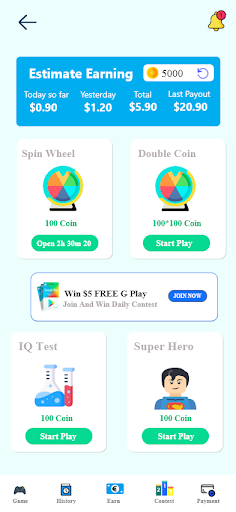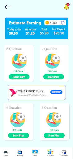 Играть в игру Викторина: Вы можете играть в викторину и выиграть Отказ Это приложение имеет много игры викторины, вы можете играть в спортивный викторину, стиль жизни, математический викторину. Это приложение поможет вам улучшить свои знания. Также вы можете сделать дополнительные очки, чтобы выиграть награду.