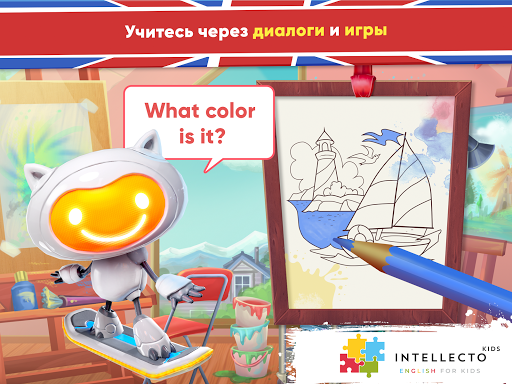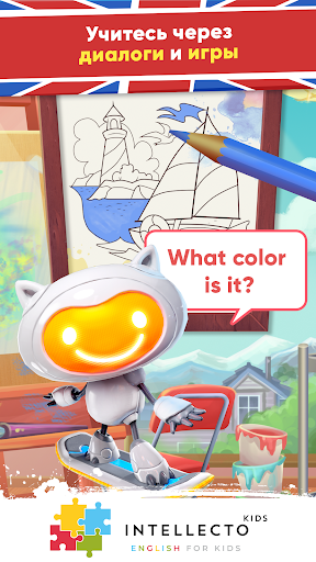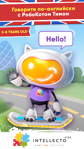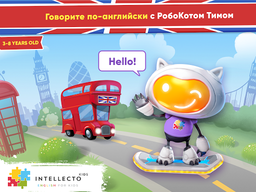 IntellectoKids Английский Для Детей помогает детям в возрасте от 3 до 8 лет УЧИТЬ АНГЛИЙСКИЙ в увлекательной и интерактивной форме! Подобно настоящему живому учителю, очаровательный персонаж с искусственным интеллектом по имени Тим РобоКот научит Вашего ребёнка английскому языку посредством простых ситуативных диалогов и образовательных мини-игр.