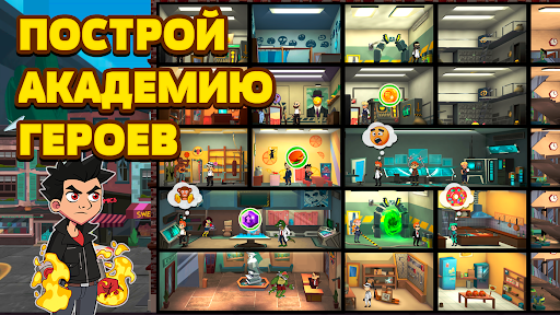 Принимай командование Академией Супергероев, расширяйтесь, строй новые комнаты и назначай туда людей для выполнения различных задач.