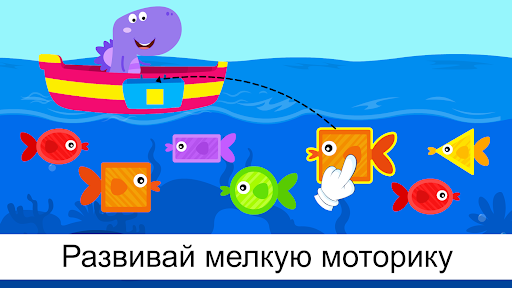 Ваш малыш сможет играть в различные обучающие игры с динозаврами. Дети и малыши от 2 до 5 лет смогут научиться определять, обводить и различать фигуры и цвета.