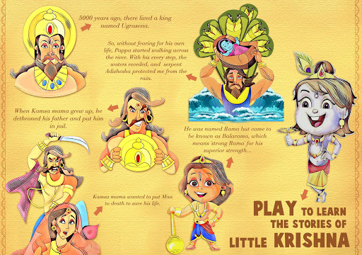 Unique style of graphics and beautiful and cute characters of Krishna and Balram.