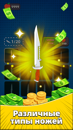 - Собирайте как можно больше яблок и разблокируйте разные типы ножей.