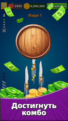 Избегайте ударов по ножам, уже вставленным в бревно, иначе игра закончится, и вы потеряете свои очки.