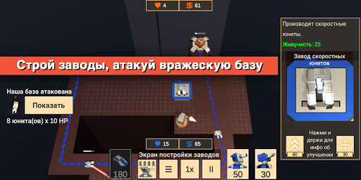 • Атакуй вражескую базу и защищайся одновременно