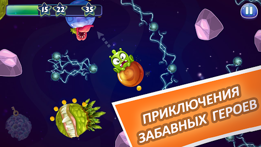 Прыгай с планеты на планету, (и следи, чтобы тебя не сожрали)! Хорошенько прицелься и жми в нужный момент!!!