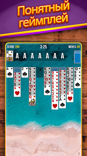 Упорядоченный набор карт начинается с Короля и заканчивается Тузом. Как только вы закончите собирать ряд, карты автоматически переместятся с игрового поля в свободную ячейку, чтобы вы могли сосредоточиться на оставшихся неразложенных картах.