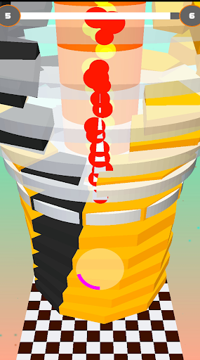 Hold onto the ball as long as possible to get fireball combo to blast through black platforms and reach the end of the stack to achieve victory!