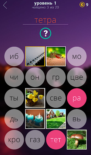 1 слово для каждой фотографии. 20 слов на каждом уровне. 380 слов в игре. Сможешь найти их все? Иногда ответы не так очевидны. Удачи!