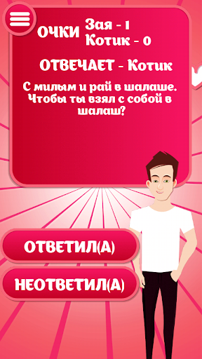 Наконец-то самая популярная викторина для влюбленных "Для пары - игра для влюбленных" теперь доступна в твоем телефоне. Формат игры позволит влюбленным раскрыть себя друг другу полностью!