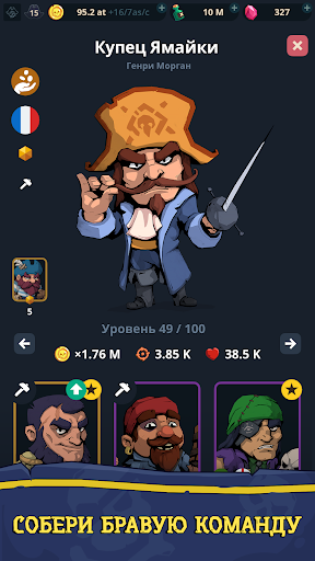 Управляйте своим пиратским отрядом: нанимайте корсаров, которые могут не только участвовать в боях, но и быть менеджерами в вашем бизнесе. Они принесут еще больший доход, ведь пираты любят золото больше всего.