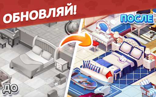 ✨! Отремонтируйте и украсьте спальню, кухню, прихожую и другие комнаты по своему желанию! Испытайте ваши творческие способности с сотнями вариантов дизайна и создайте мегаяхту вашей мечты, пока играете в эту увлекательную кулинарную игру!