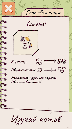 Игра очень простая, но симпатичная. А каждый котик в ней имеет свою уникальную историю!