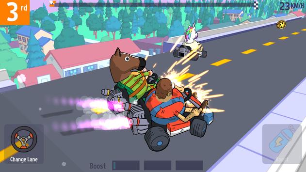 Многопользовательские гонки, где вы ездите на дурацких картах и собираете бонусы для битвы с соперниками среди которых такие популярные персонажи, как Суперфабио, Попробуй Побеги и Человек-ползун.