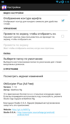 Это приложение имеет больше возможностей и имеет другой пользовательский интерфейс, чем другие ONScripter приложения.