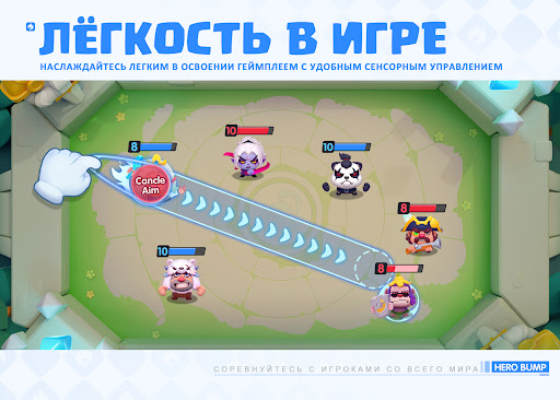 Прицельтесь и запустите своего героя, контролируя силу пуска, чтобы победить противников.