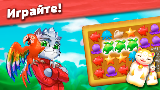 Играйте сразу за двух котят, исследуйте острова и проходите увлекательные уровни ""три в ряд""!