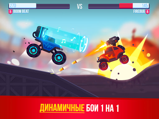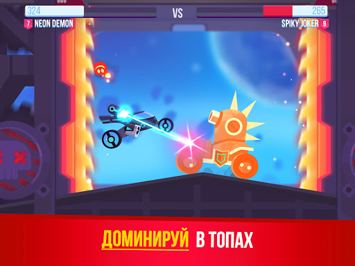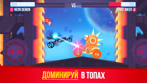 Управляй мощной боевой машиной и побеждай врагов на сумасшедших аренах! Сами законы физики помогут тебе взять инициативу в свои руки и победить! Прыгай и обстреливай противников из целого арсенала!