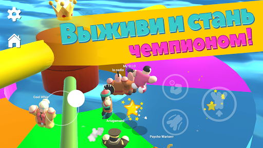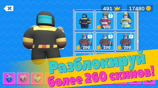 Участвуй в гонке за корону! Играй а режиме офлайн или соревнуйся с друзьями! Выбивайте других игроков в гонке за корону! Разблокируй более 260 костюмов!