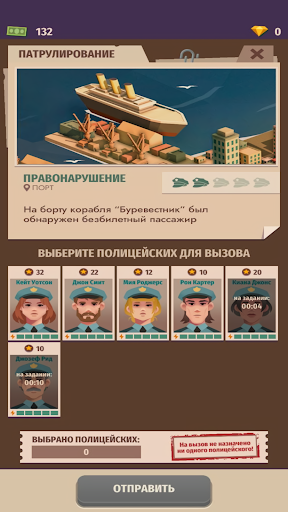 Преступления происходят постоянно и могут быть как мелкими, так и крупными - от карманной кражи до торговли людьми. Оцените сложность задания и выберите полицейского для поимки преступника - более опытным полицейским по плечу поимка крупных наркотогровцев, а новичкам можно поручить мелкие кражи. Будьте внимательны - время реагирования на вызов ограничено, поэтому выбирать полицейского нужно быстро! Не все задания полицейский может выполнить один - на сложные задания стоит отправить сразу несколько копов! Также иногда могут происходить ложные вызовы - в таком случае полицейские зря выедут на вызов, а город не выплатит премию.