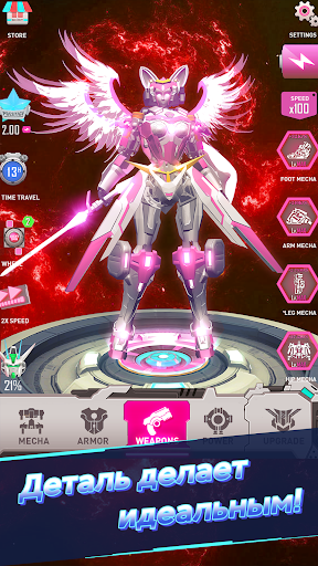 В игре Idle Robot вы можете выбрать TAURUS-24, ARIES INFINITE или один из множества других роботов, чтобы начать создание собственного боевого меха. Эта игра является уникальным шансом – исследуйте боевые мехи и создавайте для них броню, оружие, а также выбирайте уникальные способности.