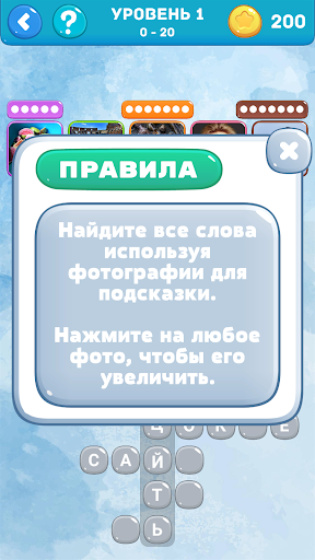 Ваша цель отгадать слова, используя для подсказки картинки.