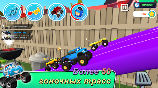 * 50 игровых уровней, гонки в детской комнате, ванная, задний двор и многие другие места.