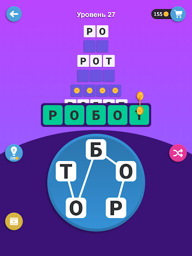 Просто проведите пальцем над буквами, чтобы они образовали слово. Найди как можно больше слов! Тренируй свой ум и словарный запас.