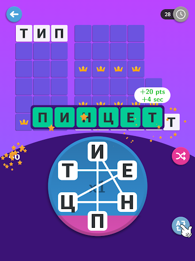 • Более длинные слова дают больше очков и увеличивают ваше оставшееся время.