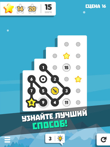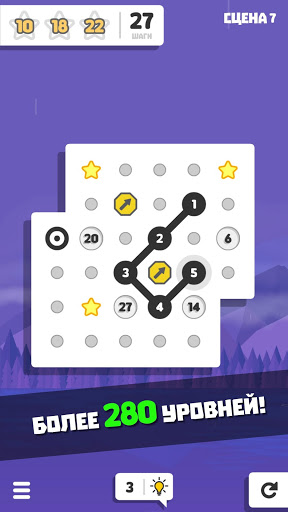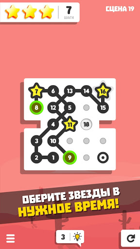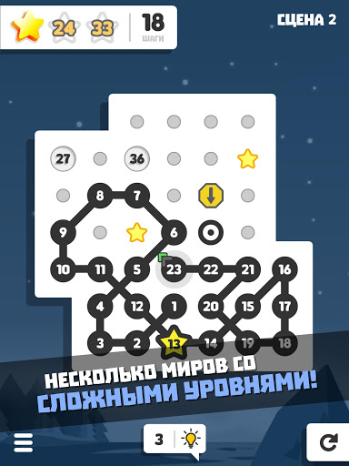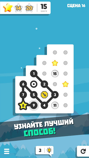 Найдите лучший маршрут и соедините точки по порядку до конца линии, но не забывайте собирать звезды в нужное время!