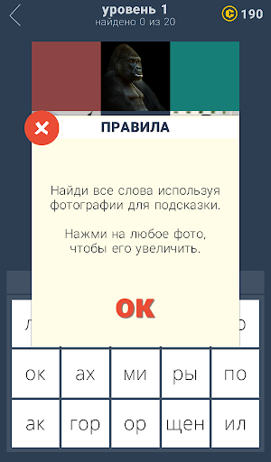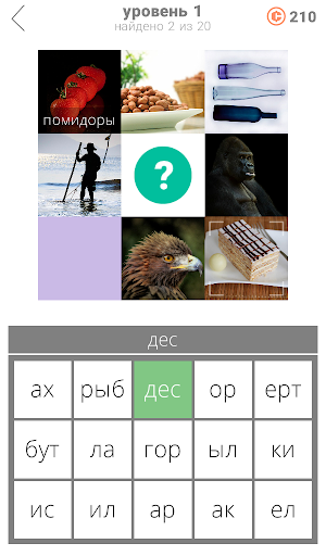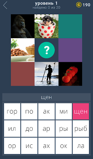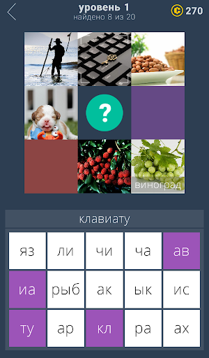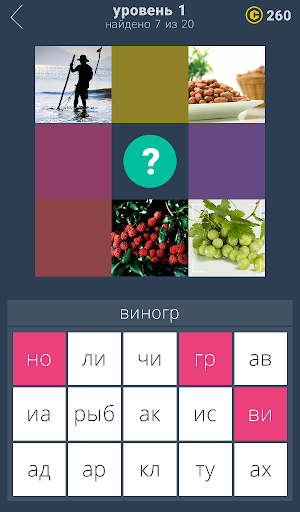 Каждая фотография содержит ключ к разгадке. Нажми на фото, чтобы увеличить его, а затем найди слово, которое имеет что-то общее с фото. Иногда ответы вполне очевидны, но попадаются и загадки посложнее. Попробуй отгадать все слова!
