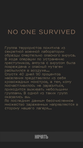 Спустя 40 дней 90 процентов населения представляли из себя кровожадных монстров, а тем, кому посчастливилось не заразиться, приходится выживать небольшими группами. В одной из таких групп оказались вы.