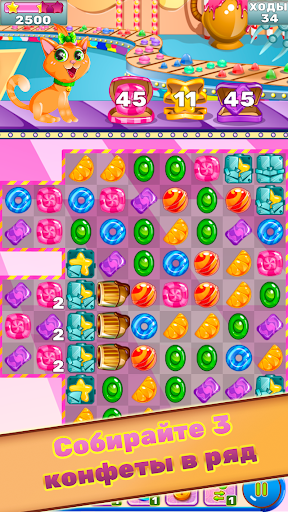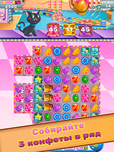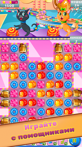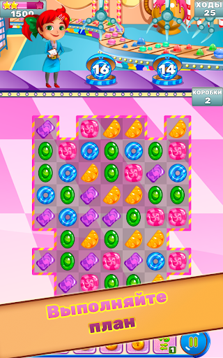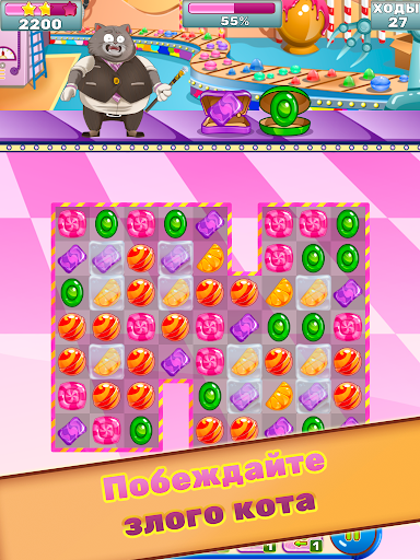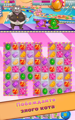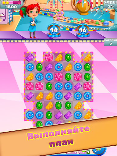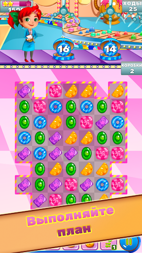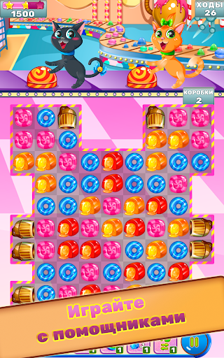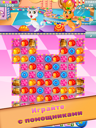 Любите конфеты? Заходите на Конфетную Фабрику, помогайте героям выполнить план упаковки. Соединяйте три конфеты в ряд и собирайте в коробки. Исследуйте пространство фабрики. Побеждайте злого кота, который мешает работе фабрики. Вас ждут более 100 уровней различной сложности.Используйте возобновляемые бустеры для прохождения уровней. Приглашайте друзей чтобы соревноваться.